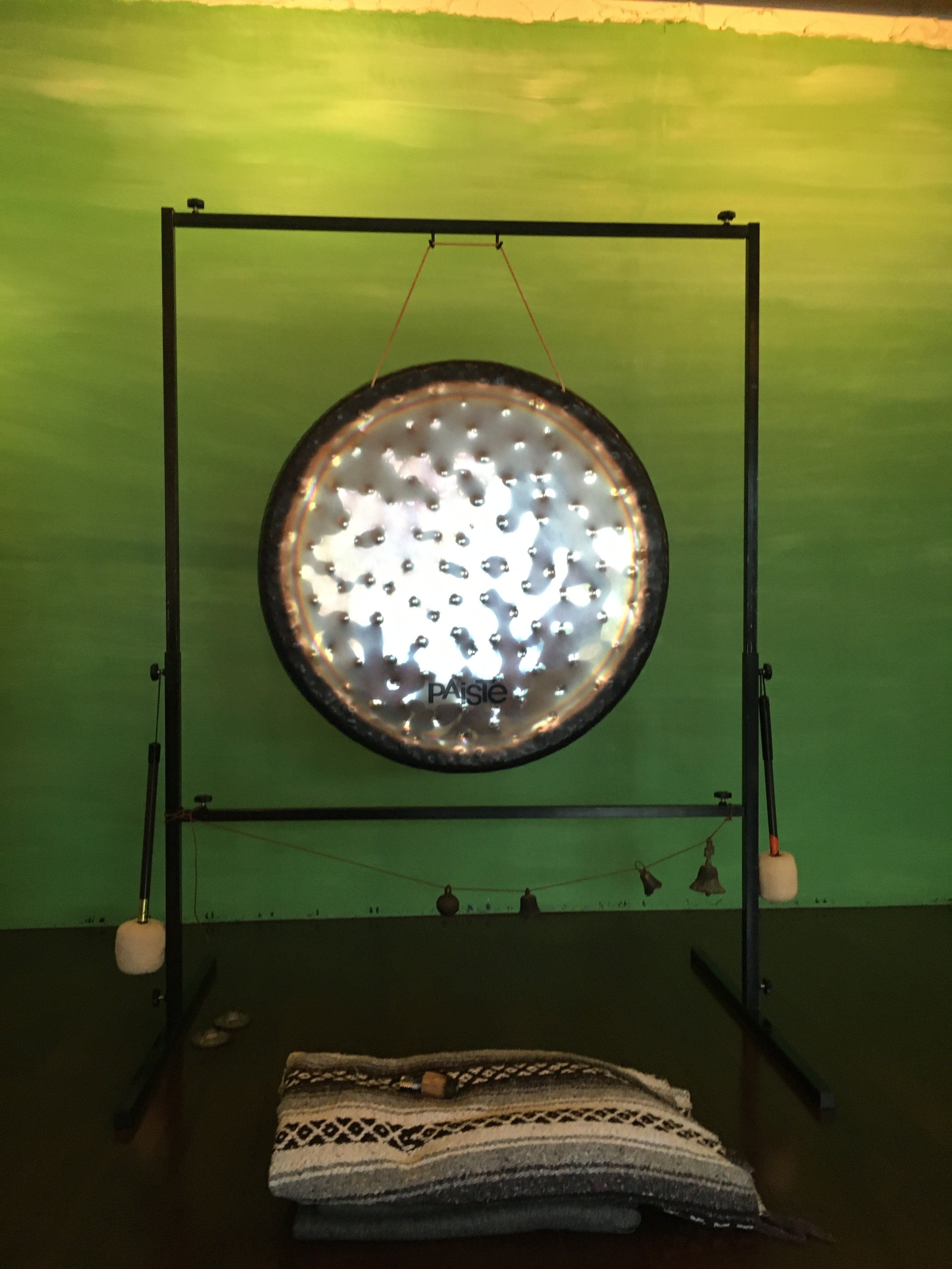 クラスの最後には銅鑼の音を聞きながら体を解放させ、リラックスしました!(プリネイタルでは写真の銅鑼よりも小さいものを使っています!)銅鑼が体全体に染み渡っていく感じで、とても不思議な心地よさでした。クラスに参加していた方の中には、お腹にいる赤ちゃんは外の音がこんな感じに聞こえていると思うので、赤ちゃんと同じ経験が出来た感じがする、と感想を話されていました!