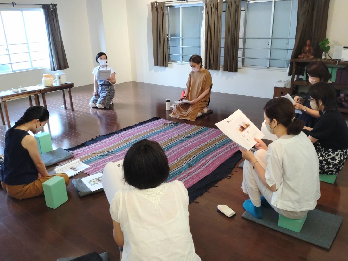 座学の時間では、えつこ先生が用意した資料を用いて