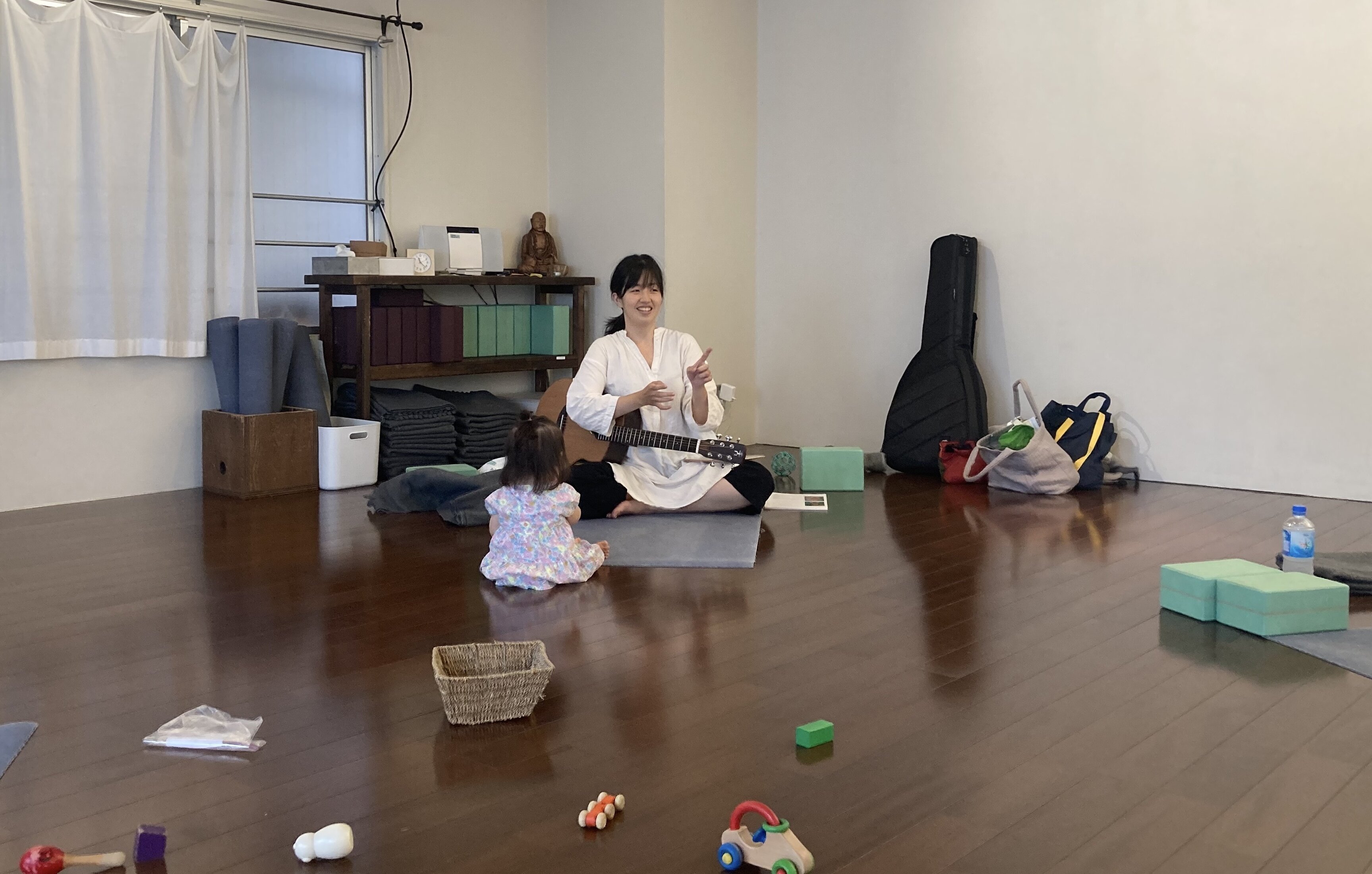 Yuka先生がガイドするヨガ、そして後半には子育てのことや普段思っていることなどおしゃべりを楽しむ1時間です。