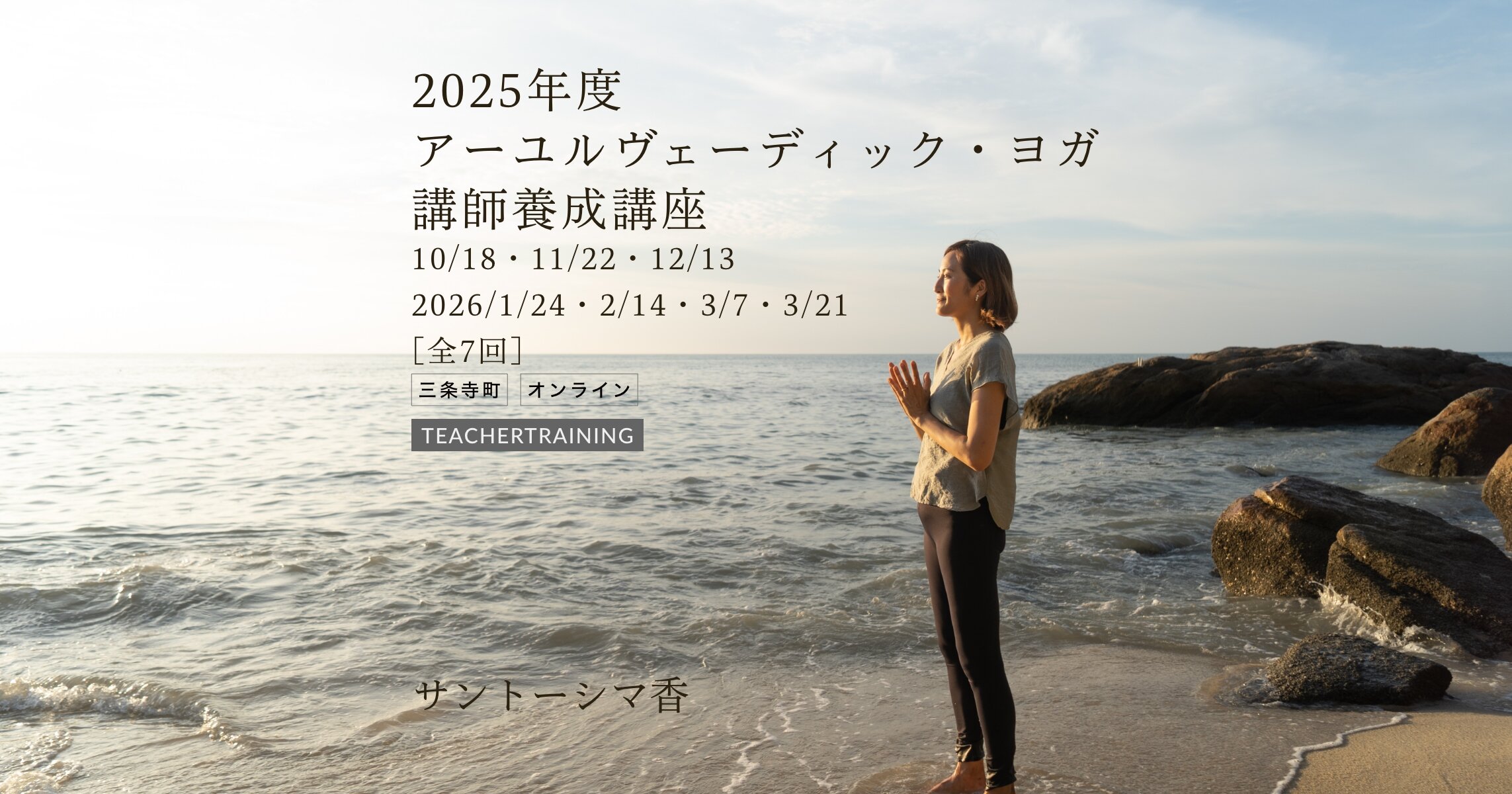 アーユルヴェーダの理論を学び、6ヶ月にわたるご自身へのケアを通して、生徒さんにアーユルヴェーダの知恵を伝え、アーユルヴェーダの理論に基づくヨガクラスを行えるようになるための講座です。