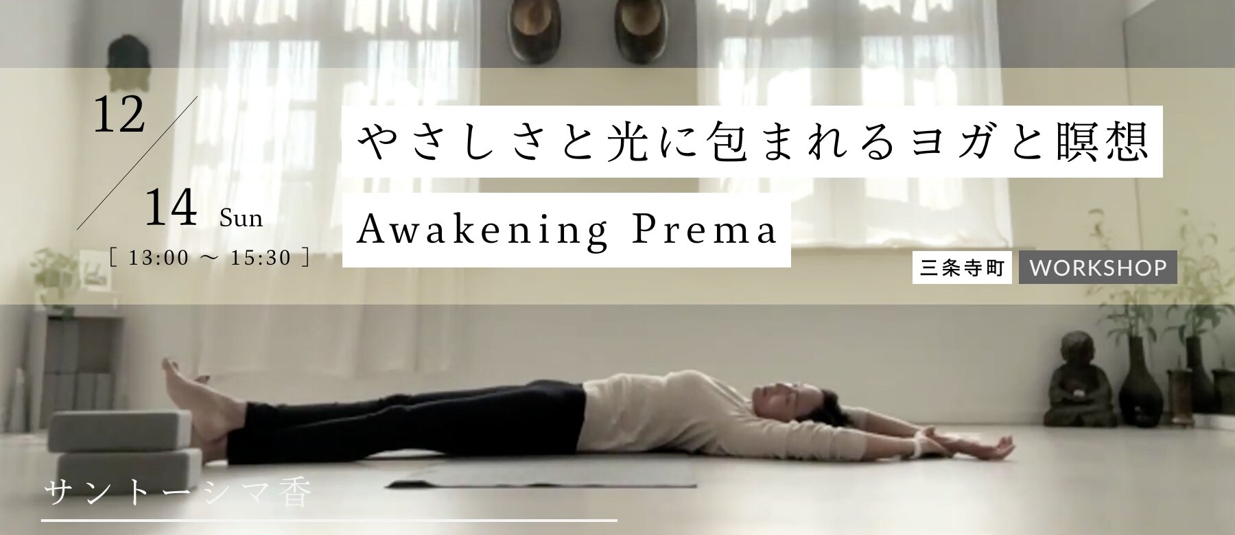 後半では、一年間の疲れをほどくヨガニードラで深い休息を体験しましょう。心の奥に輝く純粋意識としての私から、自分と他者に送る慈悲の瞑想を実践します。