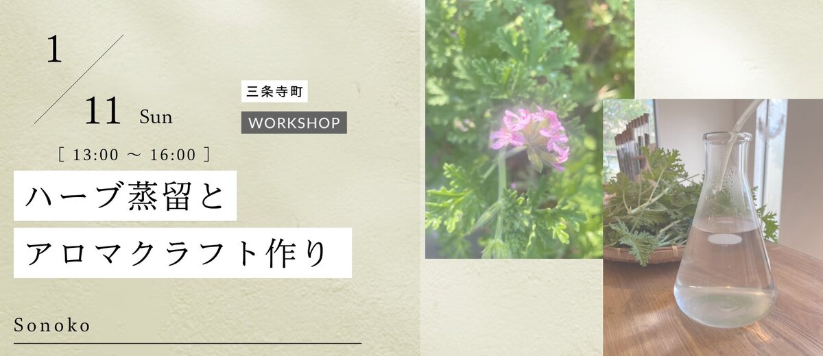 少しずつ移り変わる香りに包まれながら、深い呼吸とリラックスの時間を体験しましょう。抽出した蒸留水を使ってヘアリンスとリネンスプレーを作成します。